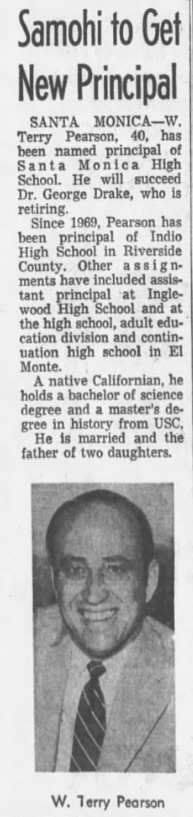 | Terry Pearson Principal Santa Monica HS LA Times 1 Jul 1971 pg 181