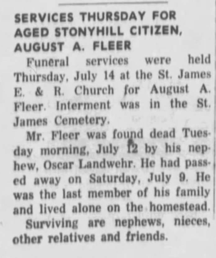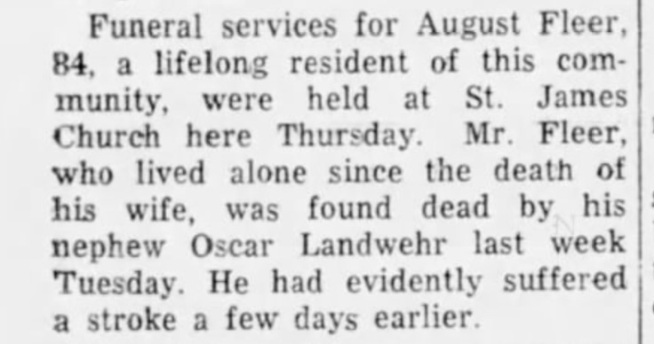Fleer, August Obit The Gerald Journal 22 Jul 1960 pg 1