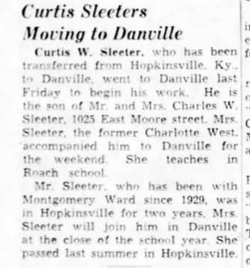 West, Charlotte and Sleeter, Curtis marriage 22 Jun 1925 announcement Decatur Herald 23 Jun 1925 |