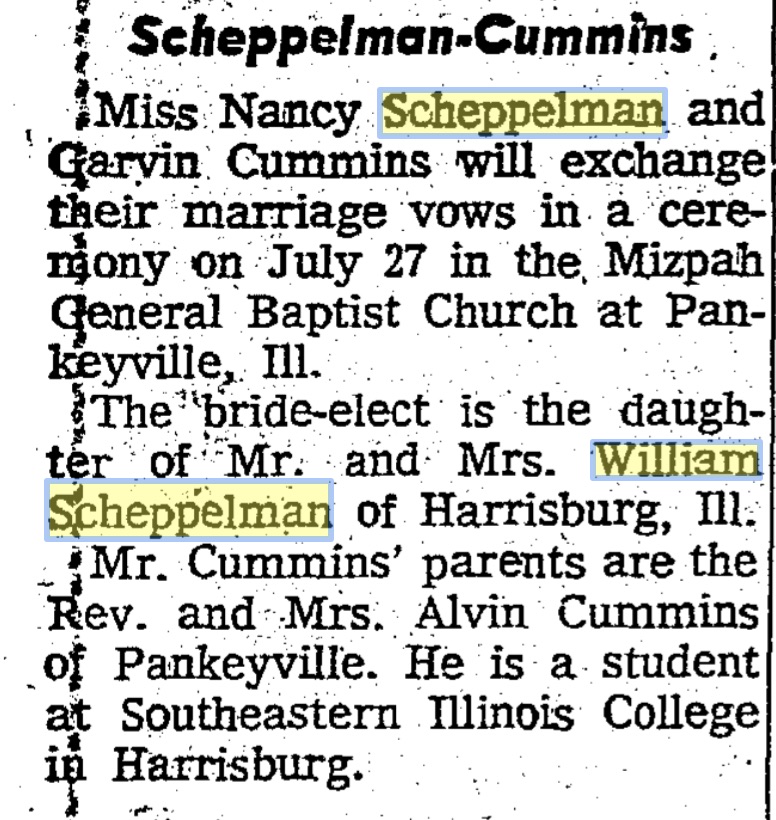 William H. Scheppelman, Jr, b. 23 Sep 1921, Cairo,,Alexander County,Illinois,USA d. 1 Nov 1985, Perryville,,Perry County,Missouri,United States (Age 64 years) |