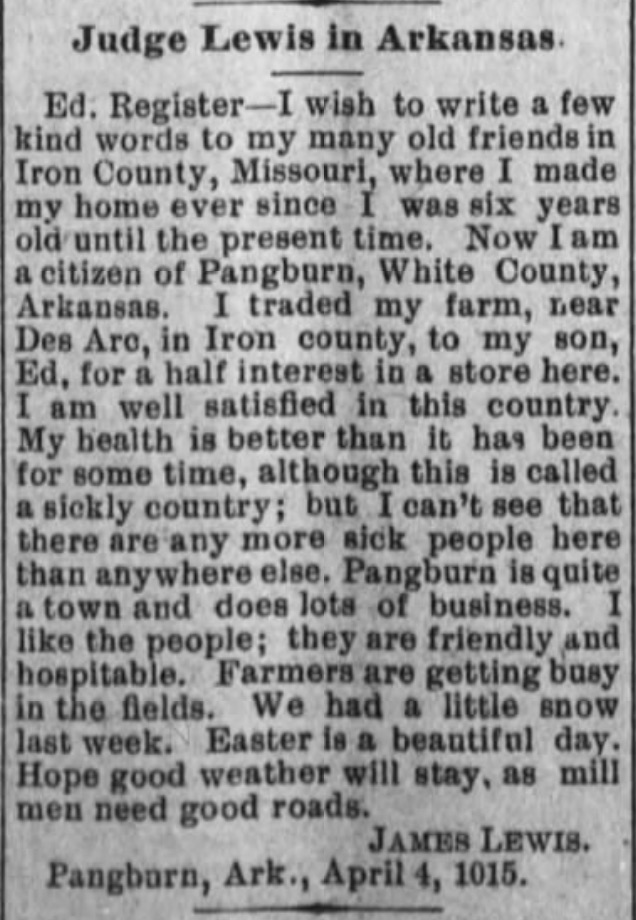 who hac been in Arkansas, next door to him was John and Emiline Lewis, and next to them was Benjamin Lewis, son of