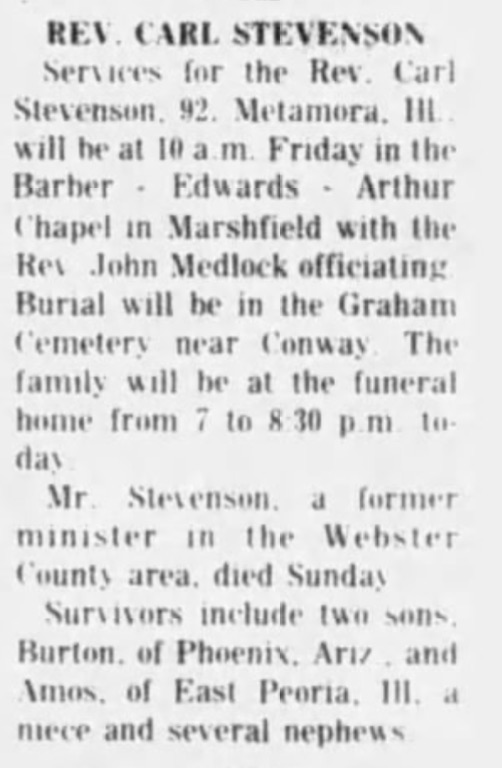 Stevenson, Carl Obit - Springfield Leader and Press (Springfield, MO) 23 Jan 1975