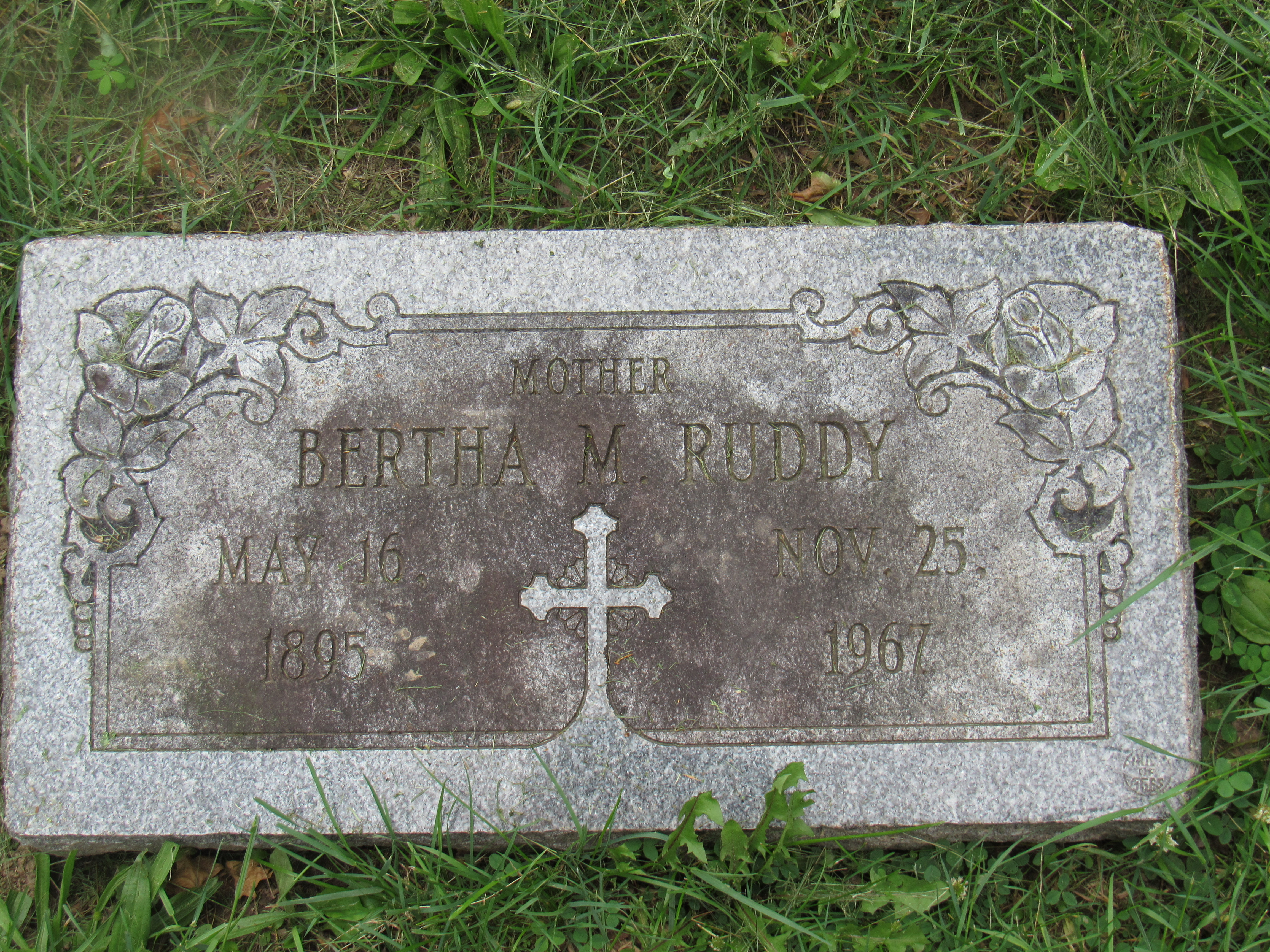 Bertha M. Ruddy (nee Heberer) on Saturday 25 Nov 1967, dear mother of Melba R. Jackson, dear grandmother of Kenneth R. Jackson, dear sister of Mrs. Rose Leimbach, Mrs. Barbara Sandermann, the late Otto, Frank, and William Heberer, dear aunt and cousin. Funeral from KRIEGSHAUSER'S West, 9450 Olive Boulevand, Tuesday, 28 Nov 1967, 1:30 pm. Interment Saint Pauls Church Yard.