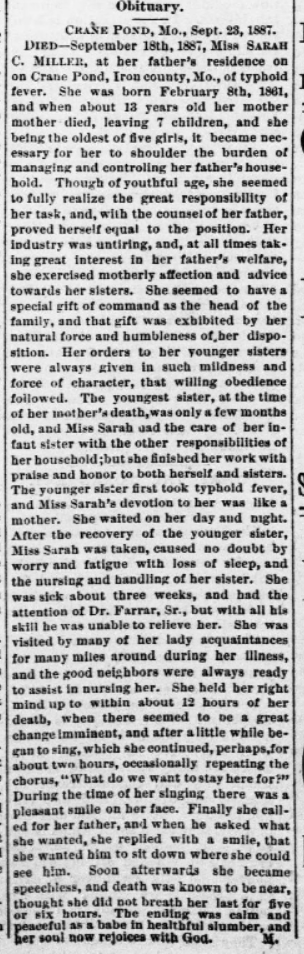 | Death - 18 Sep 1887 - Annapolis,,Iron County,Missouri,USA |