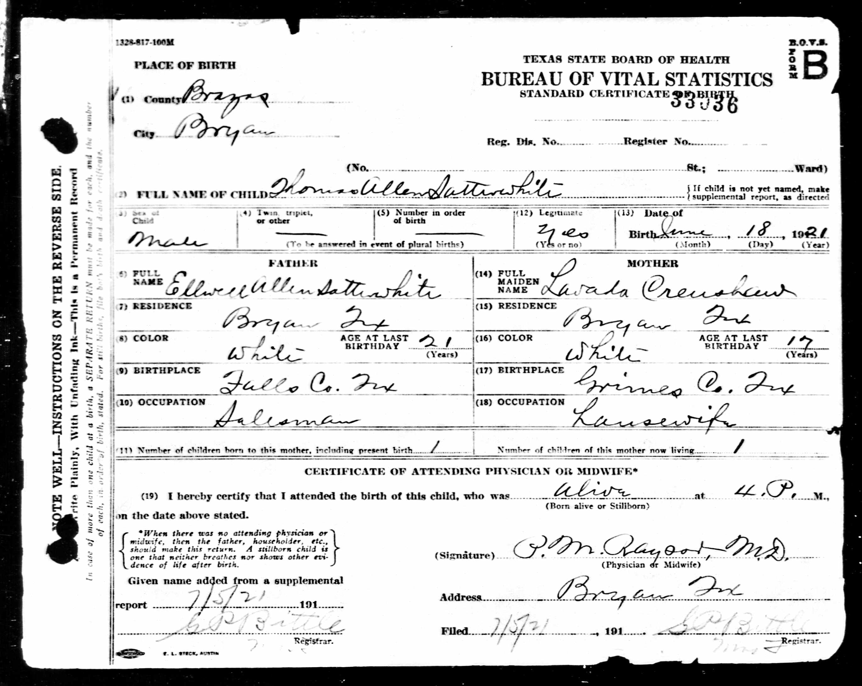 TexasBirthCertificates1903-1932ForThomasAllenSatterwhite