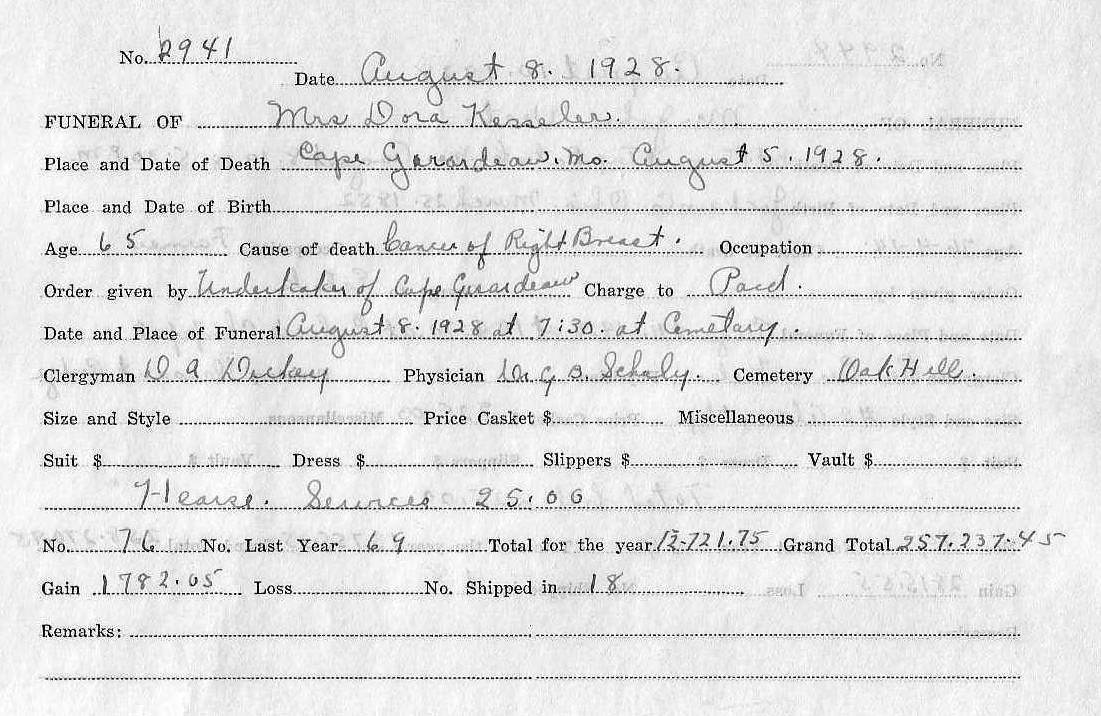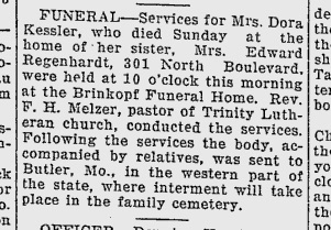 Kessler, Dora nee Theuerkauf - Oak Hill Cemtery Record - Butler, MO