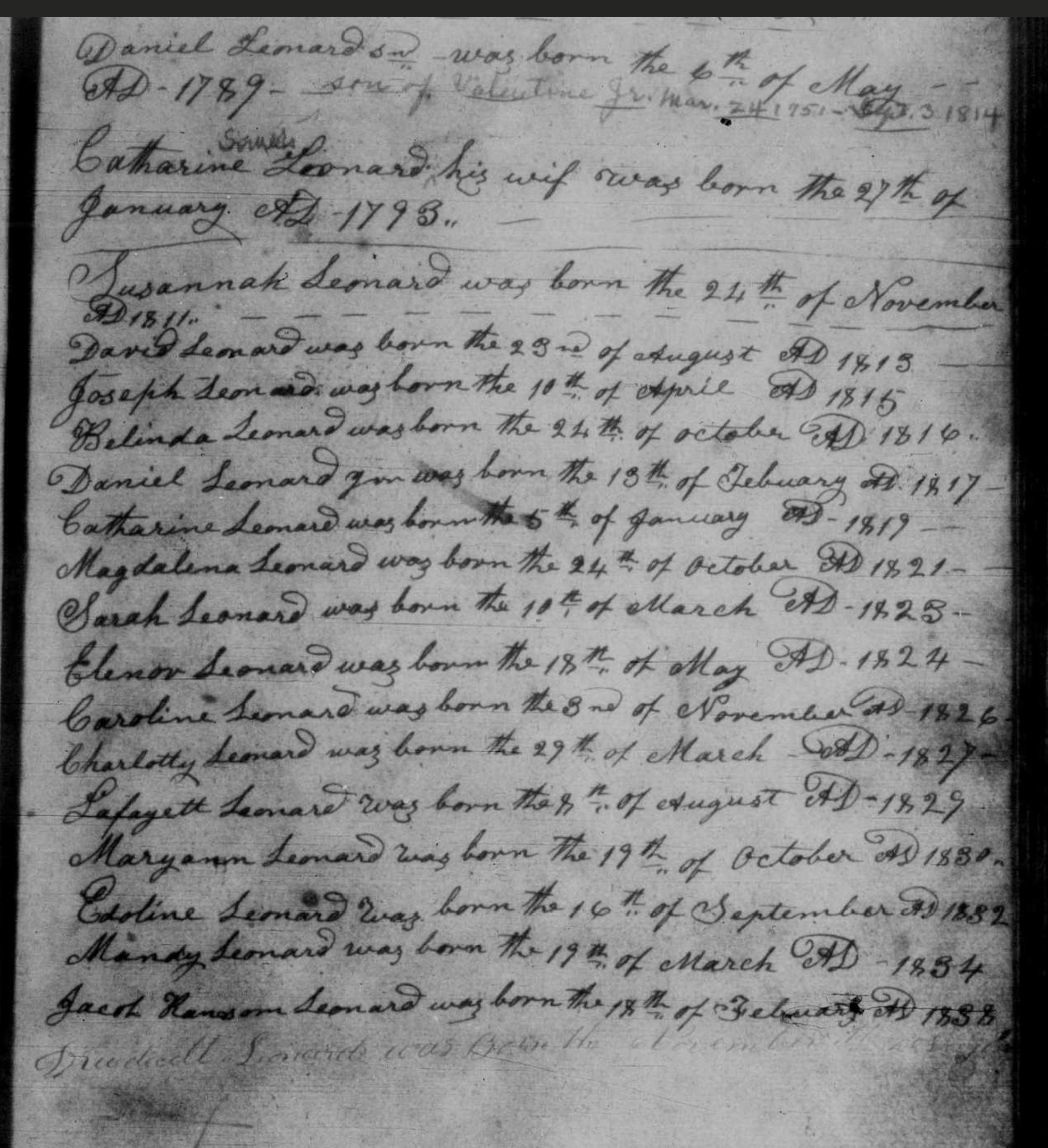 Valentin Leonard, Jr, b. 24 Mar 1752, ,Davidson County,North Carolina,British Colonial d. 03 Sep 1814, ,,Davidson County,North Carolina,USA (Age 62 years) |