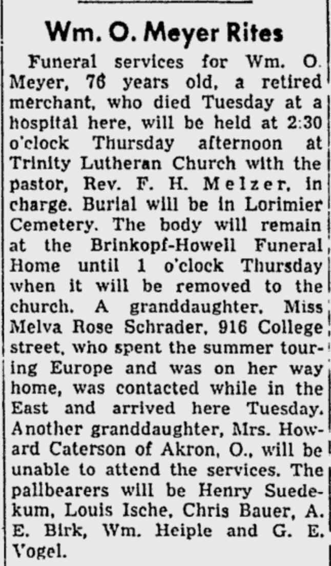 William O Meyer Obit SE Missourian 31 Aug 1949 pg 2