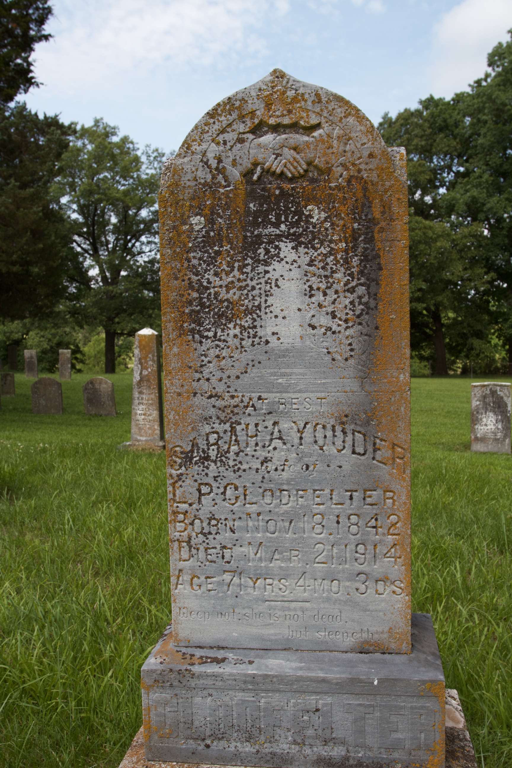 | 3. Alpha June Clodfelter, b. 18 Mar 1872, Cape Girardeau County,,Cape Girardeau County,Missouri,USA d. 04 Jul 1953, Cape Girardeau County,,Cape Girardeau County,Missouri,USA (Age 81 years) |