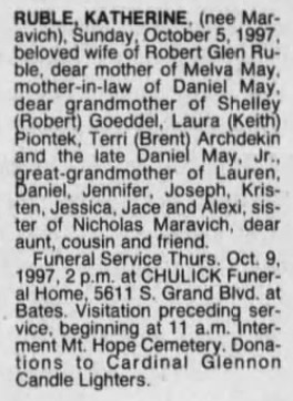 Ruble, Katherine Obit STL Post-Dispatch 8 Oct 1997 page 14