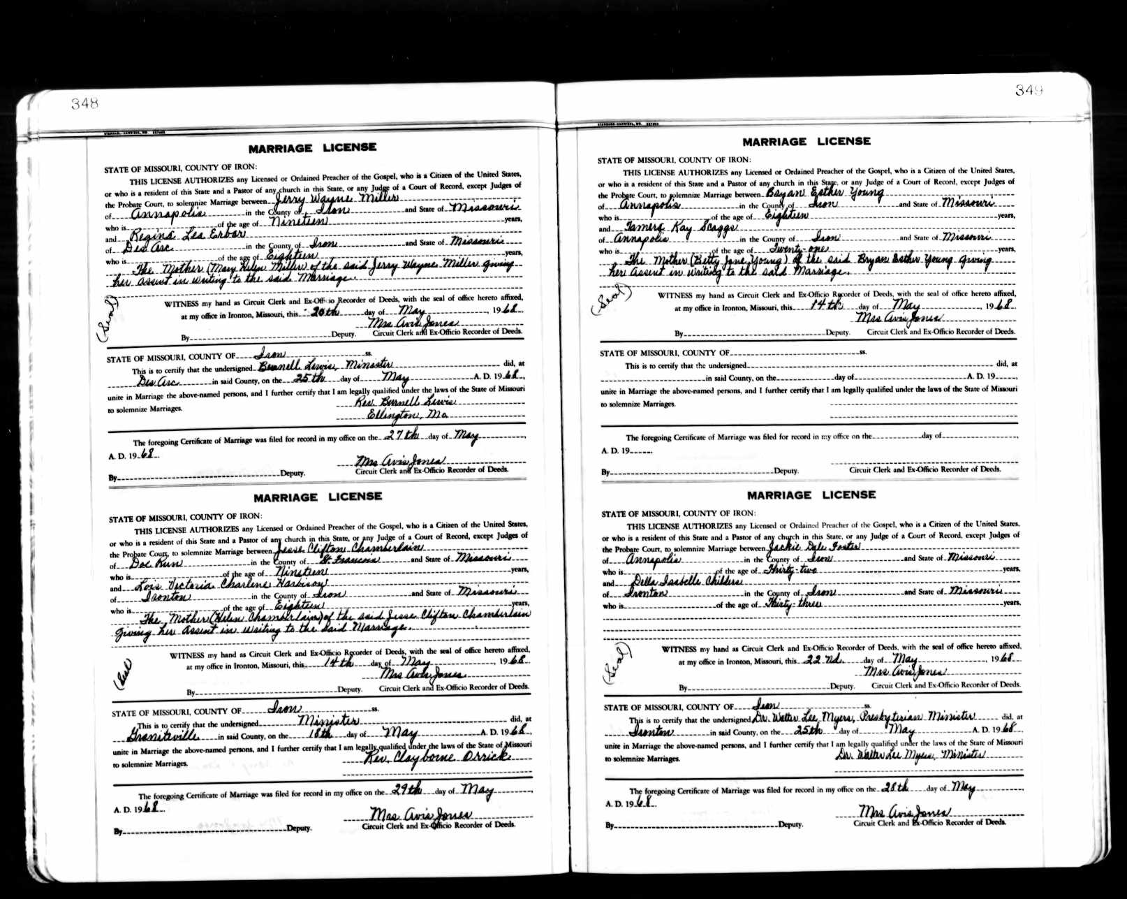 | Marriage - 25 May 1968 - Des Arc,,Iron County,Missouri,USA |