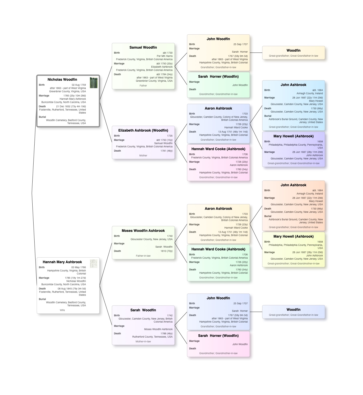 d. December 21, 1832 Fosterville, Bedford Co., TN; m. 1789 VA, Hannah Mary Ashbrook, b. May 3, 1766 Hampshire Co., VA, d. August 8, 1845 Fosterville, Bedford Co.,