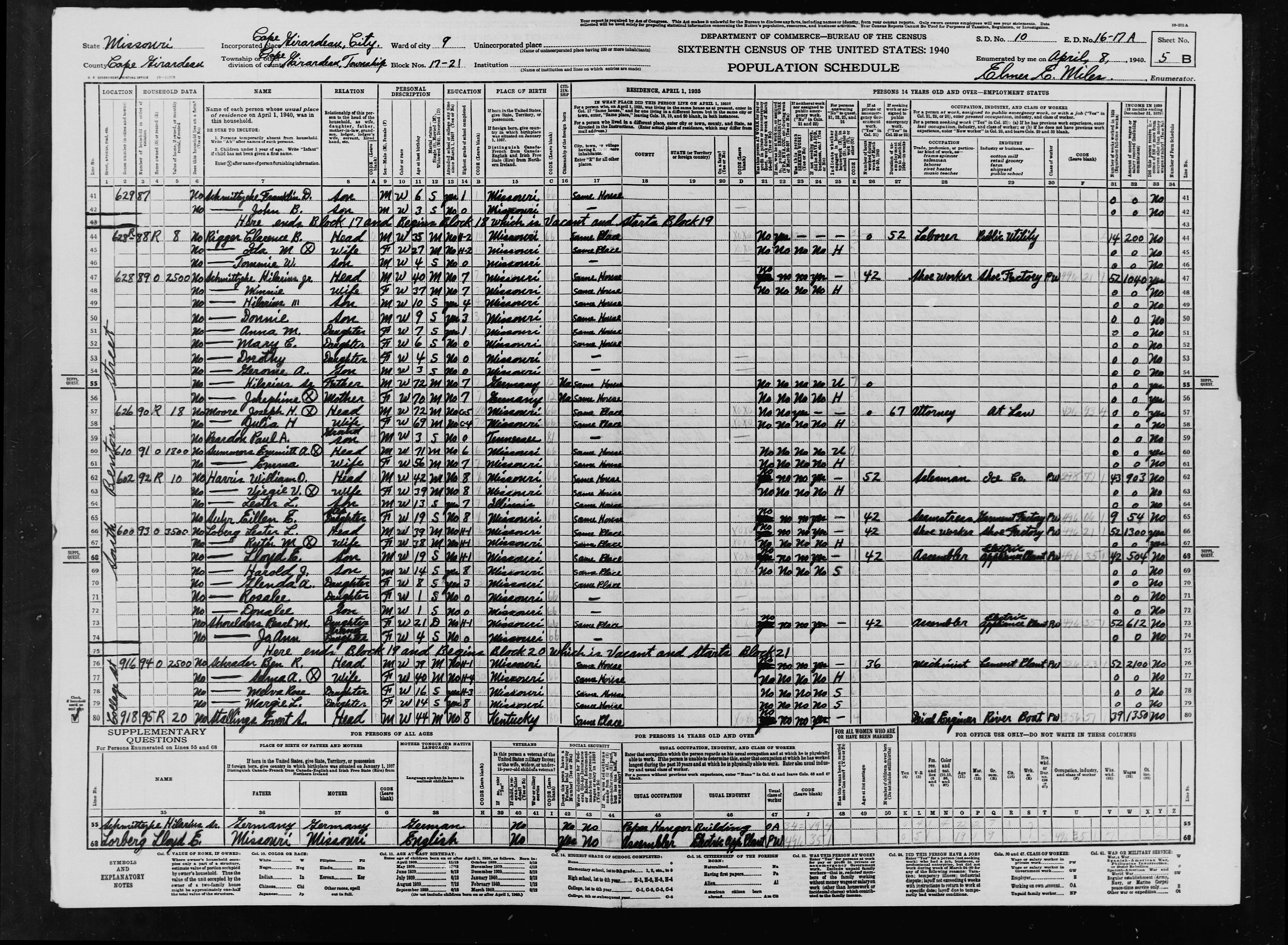 ![]() | Ben Schrader Family 1940 Census |