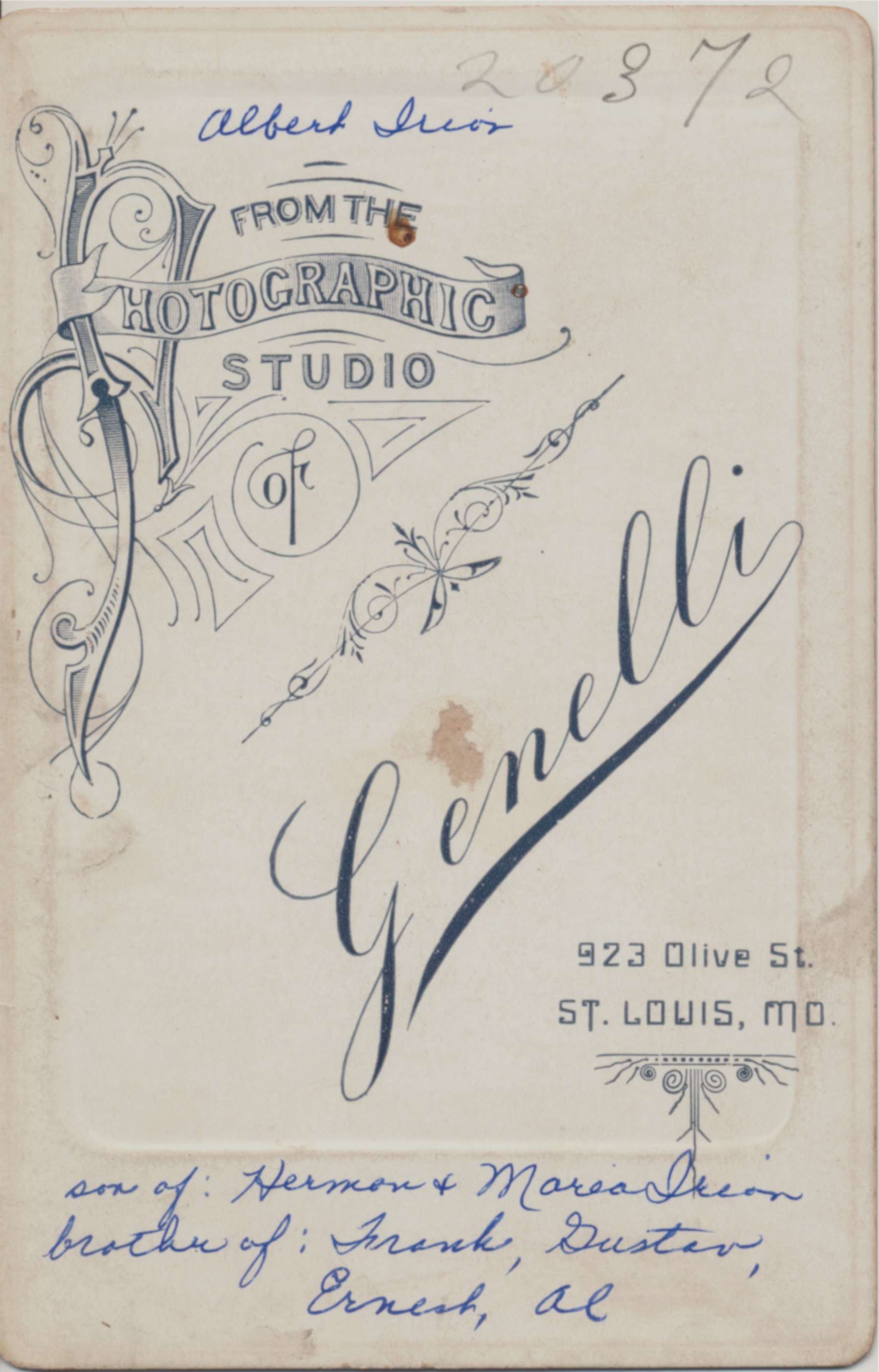 Herman Albert Irion, b. 31 Jan 1827, Ellwangen,,Regierungsbezirk Stuttgart,,Baden-Württemberg,Germany d. 21 Feb 1907, St. Louis,,(City of St. Louis),Missouri,USA (Age 80 years) |