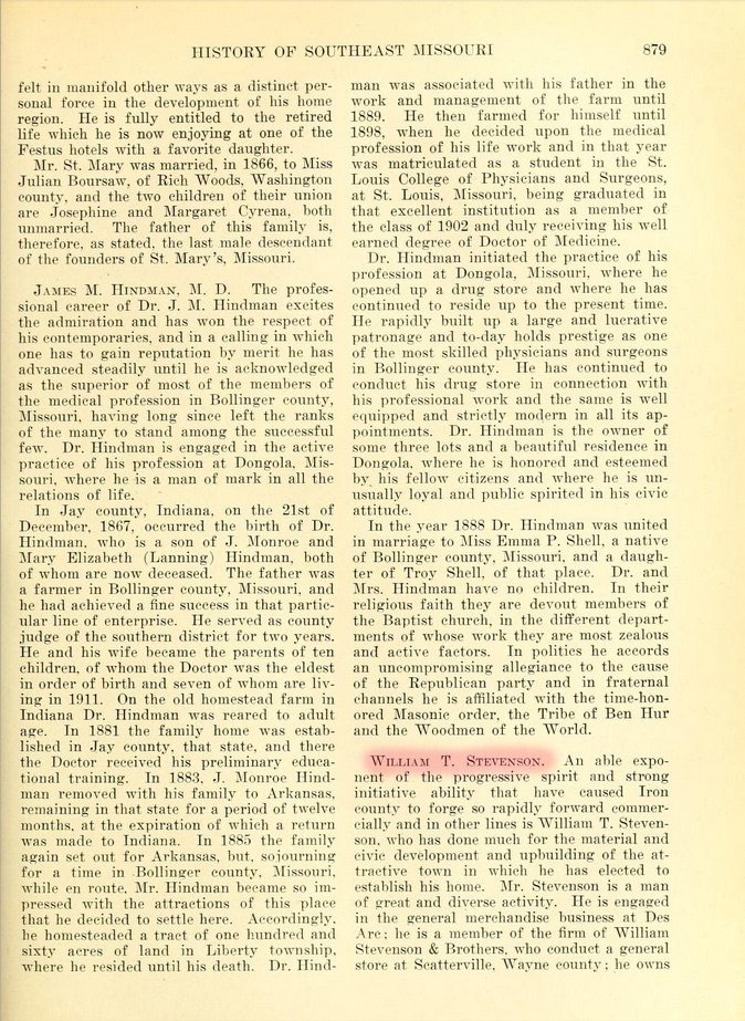 In the book "History of Southeast Missouri" (published c1912) on pages 879 881 the following write up appeared:
