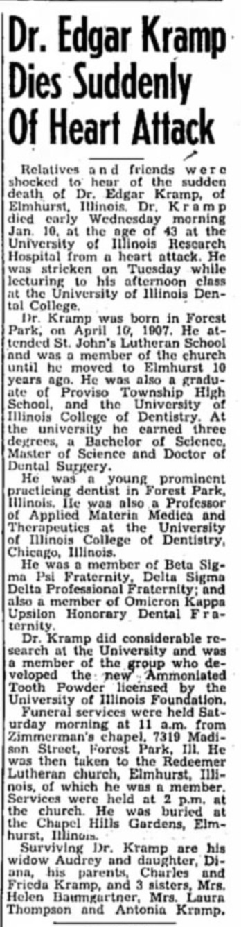Dr. Edgar Kramp Obit Forest PArk Review 18 Jan 1951 pg 1