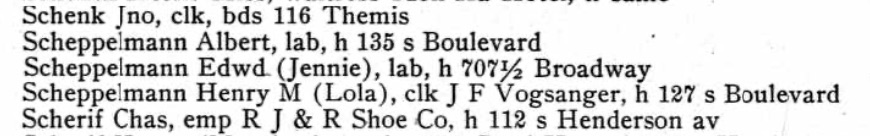 Mr. Scheppelmann had suffered minor attacks of heart disease for more than two years, but his health had been fairly good. He had been working regularily in recent weeks. He was about 64 years and was a son of the late Henry Scheppelmann, who was for years a stationary engineer at the old Pott Flour Mill here. He was born in Cape Girardeau and spent virtually his entire here. He was a member of the Presbyterian Church and the Sons of Veterans chapter.