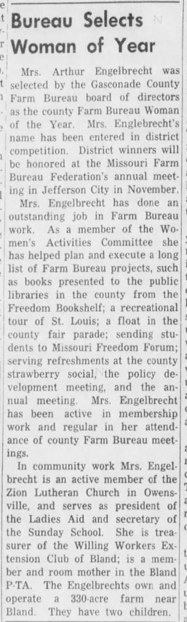 Morre, Ruth to Arthur Engelbrecht Marriage Gasconade County Republican 10 Oct 1940 pg 1