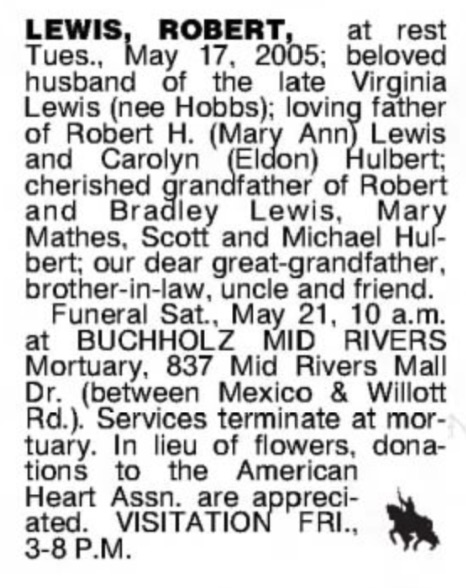 Robert Lewis Obit STL Post-Dispatch 19 May 2005 pg B005