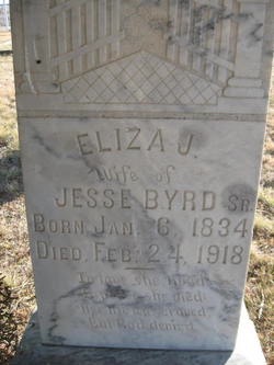 - Eliza Jane 'Clint' Lewis (daughter of David Wesley Lewis and Nancy Melissa Jane Hatfield) was born 06 Jan 1834 in Jasper, Marion County, Tennessee and died 24 Feb 1918 in Cross Cut, Brown County, Texas. On 23 Jan 1861 in Forsyth, Taney County, Missouri she married Jesse Blackstone Byrd, Sr. (son of James Byrd and Nancy Carpenter) who was born 16 Feb 1820 in Hawkins, Granger County, Tennessee and died 09 Feb 1884 in Brown County, Texas. He is buried in Lost Creek Cemetery, Byrds, Brown County, Texas and she is buried Cross Cut Cemetery, Brown County, Texas. On Aug 1853 she married John L. Wallis (son of John Wallis) who was born in 1830 in Marion County, Tennessee and died in 1859 in Madison County, Missouri.